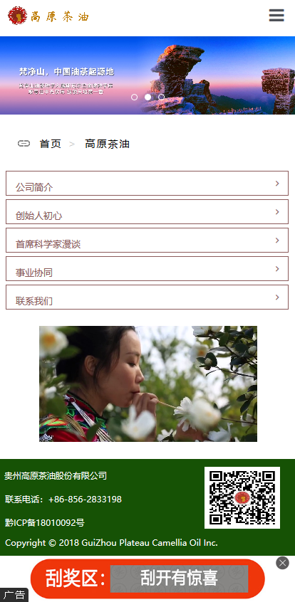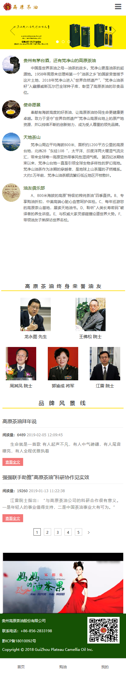 贵州高原茶油股份有限公司,由6位留美年轻人领衔创立,是一个使命、愿景和创新驱动的高原茶油品牌企业。 公司2018年5月在中华人民共和国贵州省铜仁市高新技术开发区登记注册,公司目前唯一专注的产品:贵州梵净山800米海拔的高原“特级初榨纯茶油”。