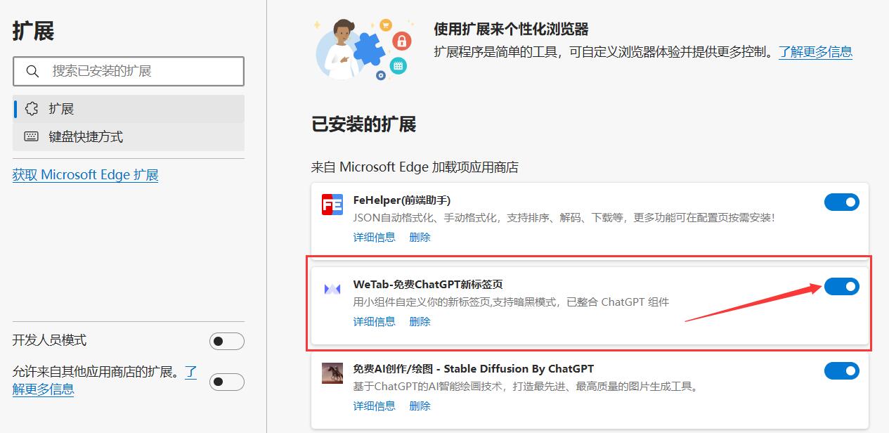 Edge无疑是微软目前为止最好用的浏览器,具有丰富的扩展插件,加了扩展插件的edge浏览器真是好用,笔者原来经常使用的浏览是谷歌浏览器,但是在国内网络环境下,谷歌搜索、谷歌更新、谷歌翻译等这些都无法使用、谷歌插件也无法安装扩展。因此已慢慢习惯使用Edge浏览器了,今天就为大家推荐一个WeTab新标签页插件,这个插件整合了ChatGPT,安装后,可以无限制免费的使用ChatGPT。