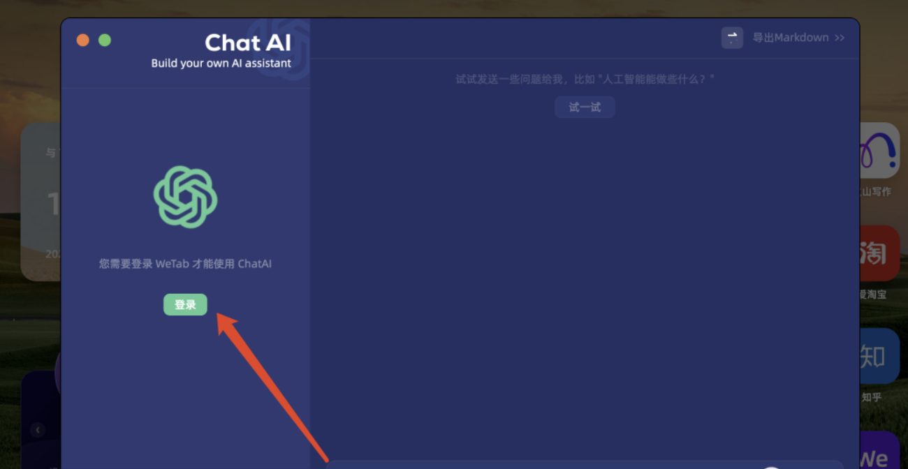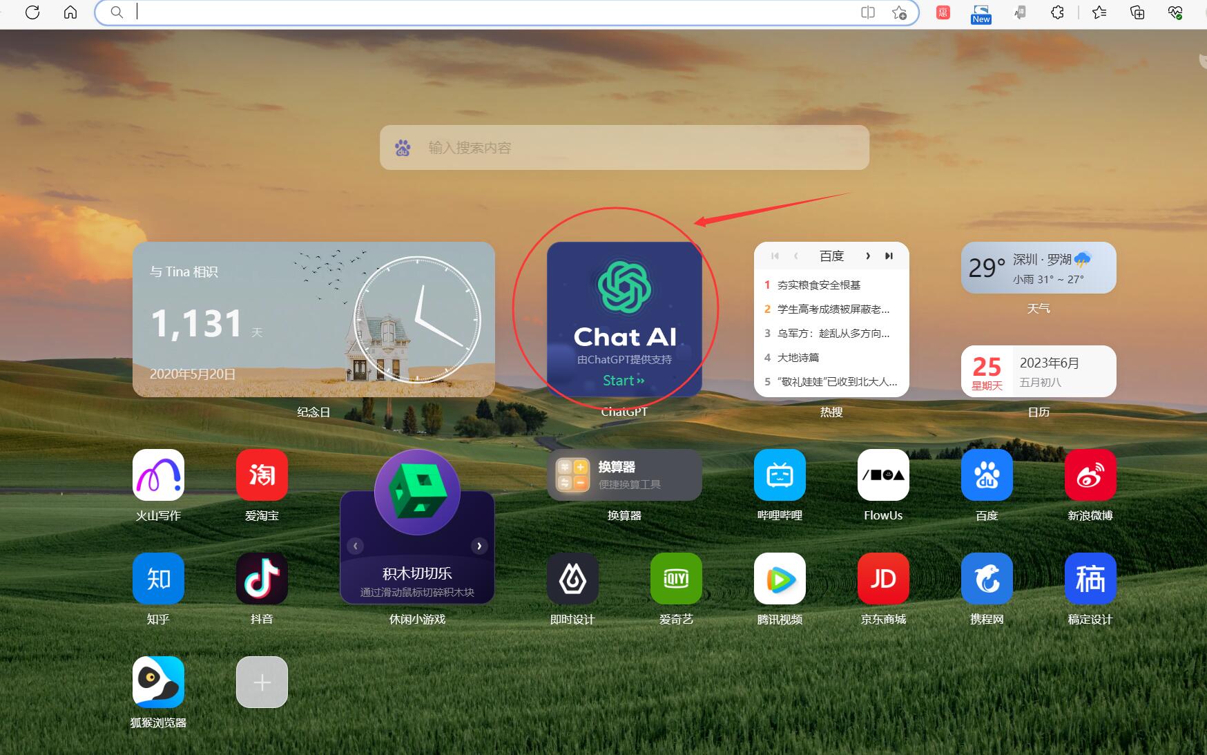 第六步:至此,webtab插件已安装完毕。打开浏览器或者新建标签页,我们已看到WeTab新标签页已生效了,点击Chat AI就可以使用了。